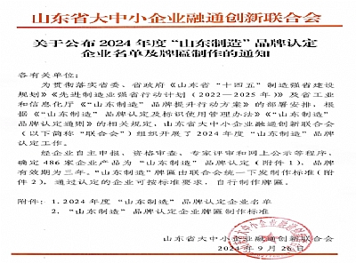 近日,山東省大中小企業(yè)融通創(chuàng)新聯合會發(fā)布了2024年度“山東制造”品牌擬認定企業(yè)名單,經過嚴格的評審和層層篩選,我司的代表產品——防爆鋰電池單軌吊機車榮獲“山東制造”品牌認證! “山東制造”品牌認定不僅是對企業(yè)過去努力的認可,更是對未來…