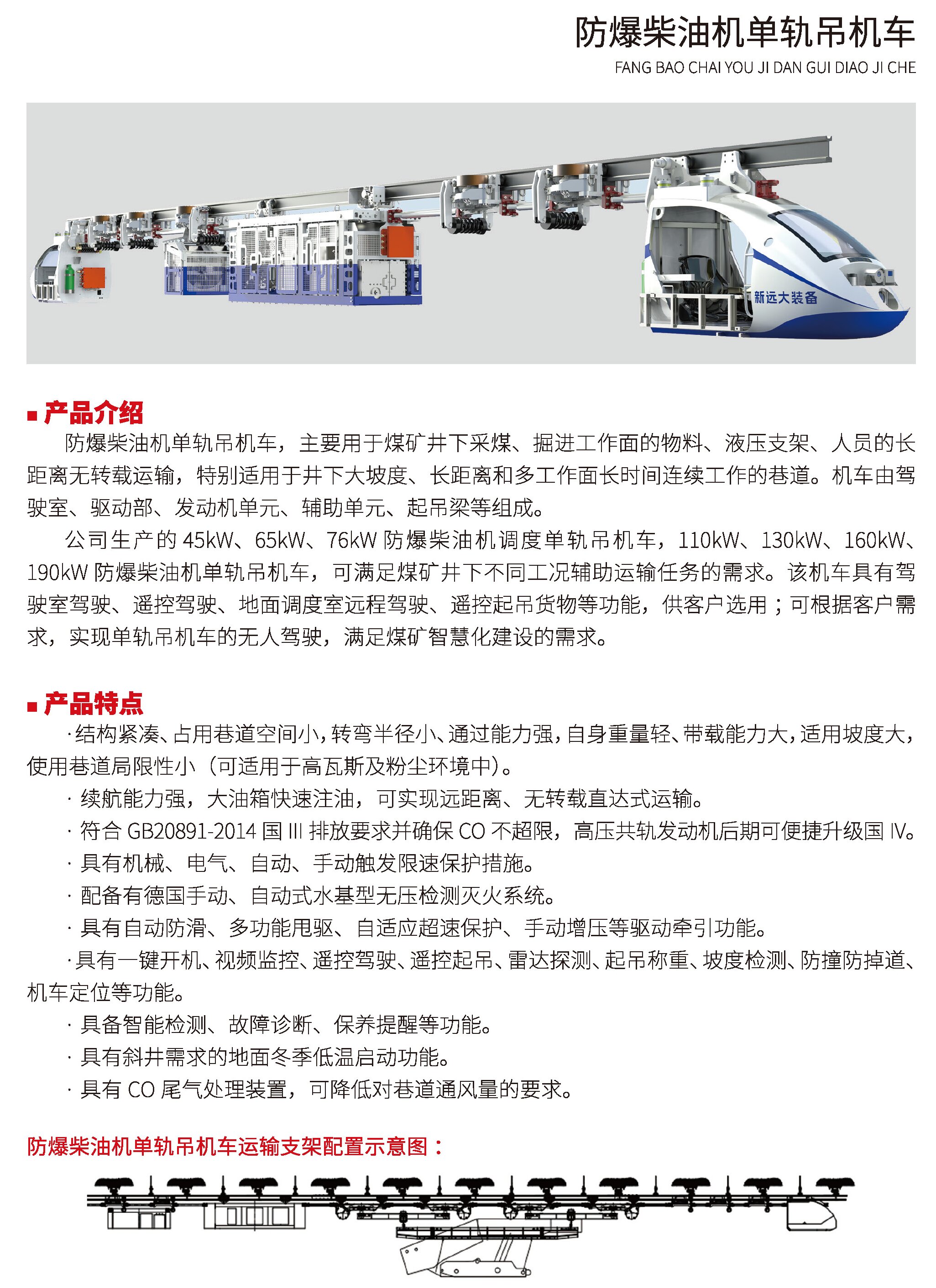 防爆柴油機(jī)單軌吊機(jī)車